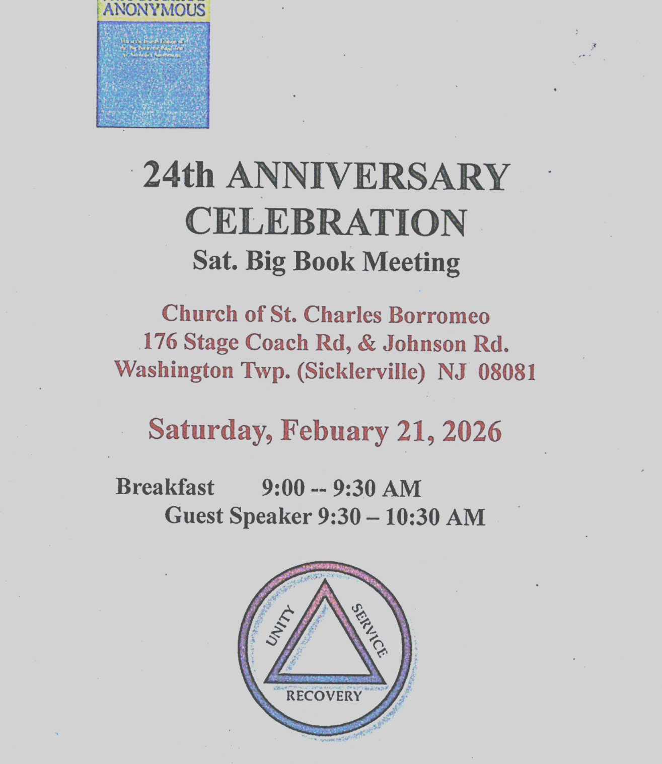 Join us in celebrating the 24th Anniversary of this special Saturday Big Book Meeting. This anniversary gathering honors recovery, unity, and service with fellowship, breakfast, and an inspiring guest speaker.