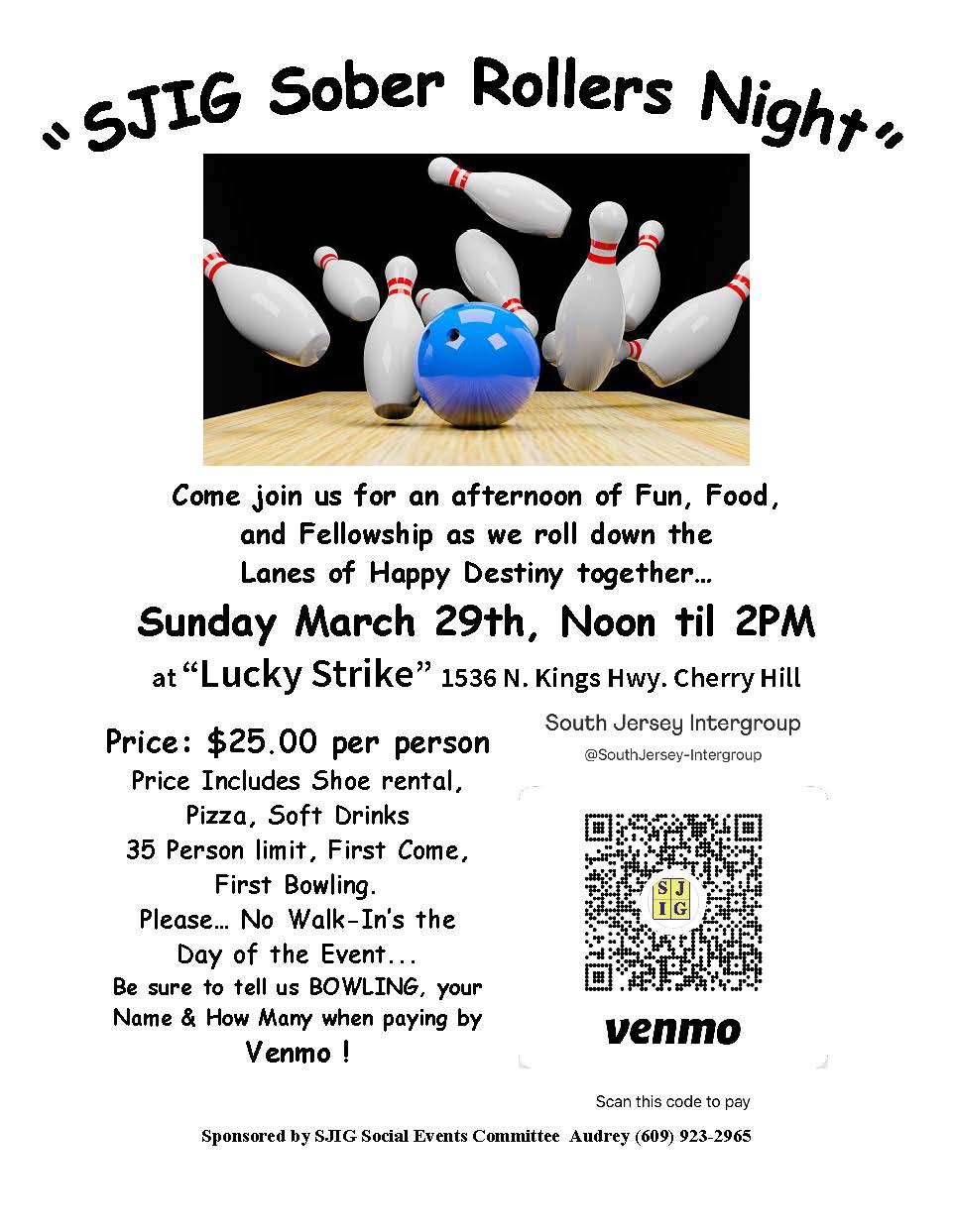 Come join us for an afternoon of fun, food, and fellowship as we roll down the lanes together! Grab your friends and get your teams together for a great sober Sunday event.